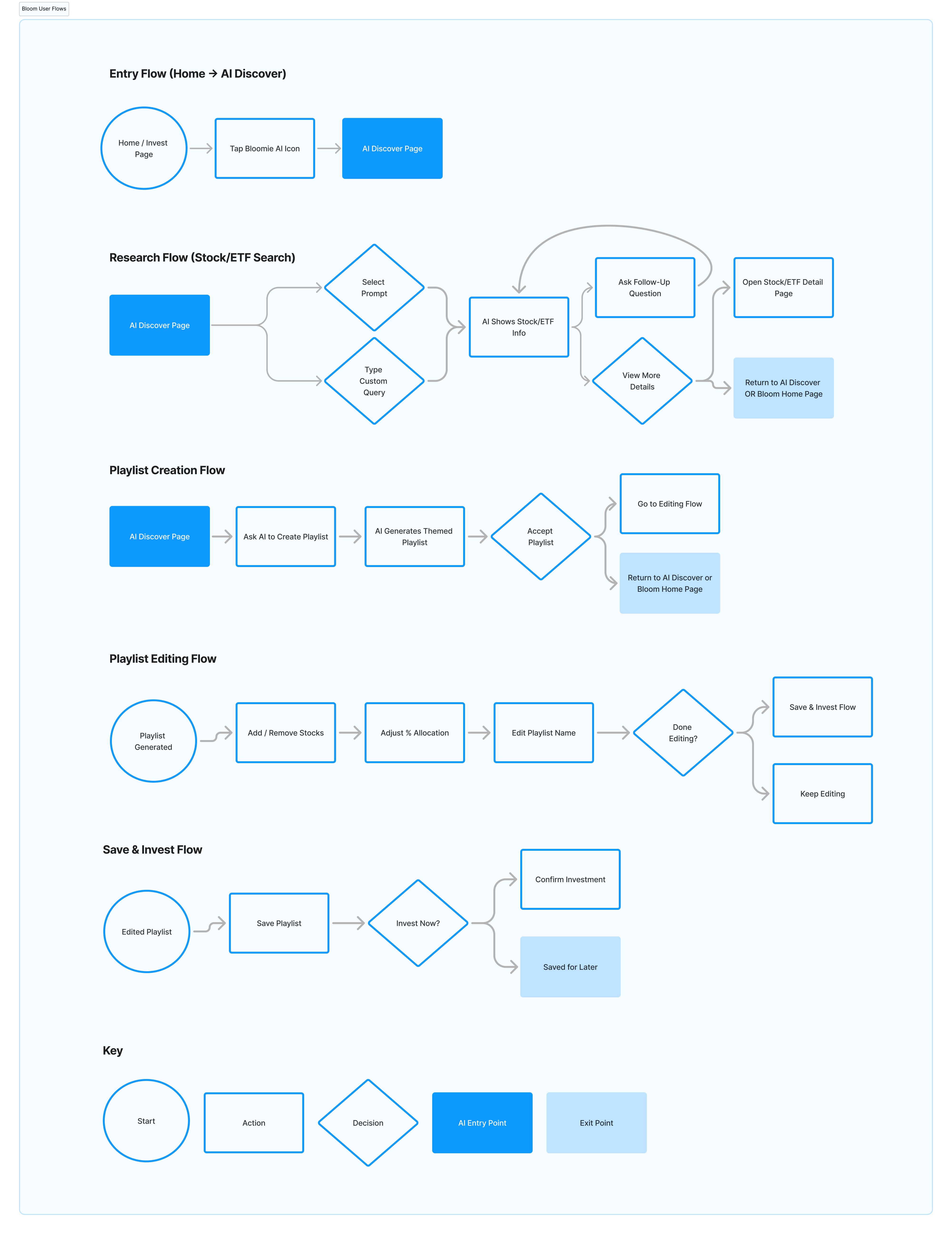 This showed a clear opportunity for Bloom to combine AI-powered explanations with beginner-friendly design, making stock discovery both transparent and approachable for new investors.