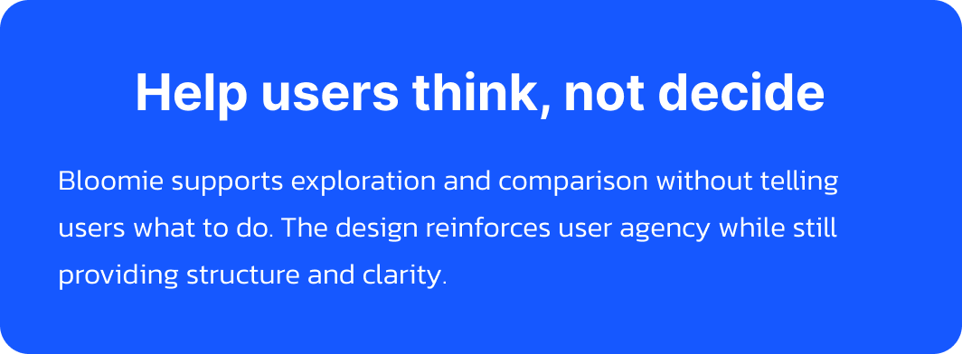 This shift made Bloomie feel less like a chatbot and more like a tool that adapted to the user’s goal in the moment.