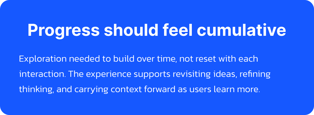 Users wanted to revisit past questions, track how their thinking evolved, and pick up where they left off. Without a sense of history, Bloomie felt disposable, even when the insights weren’t.