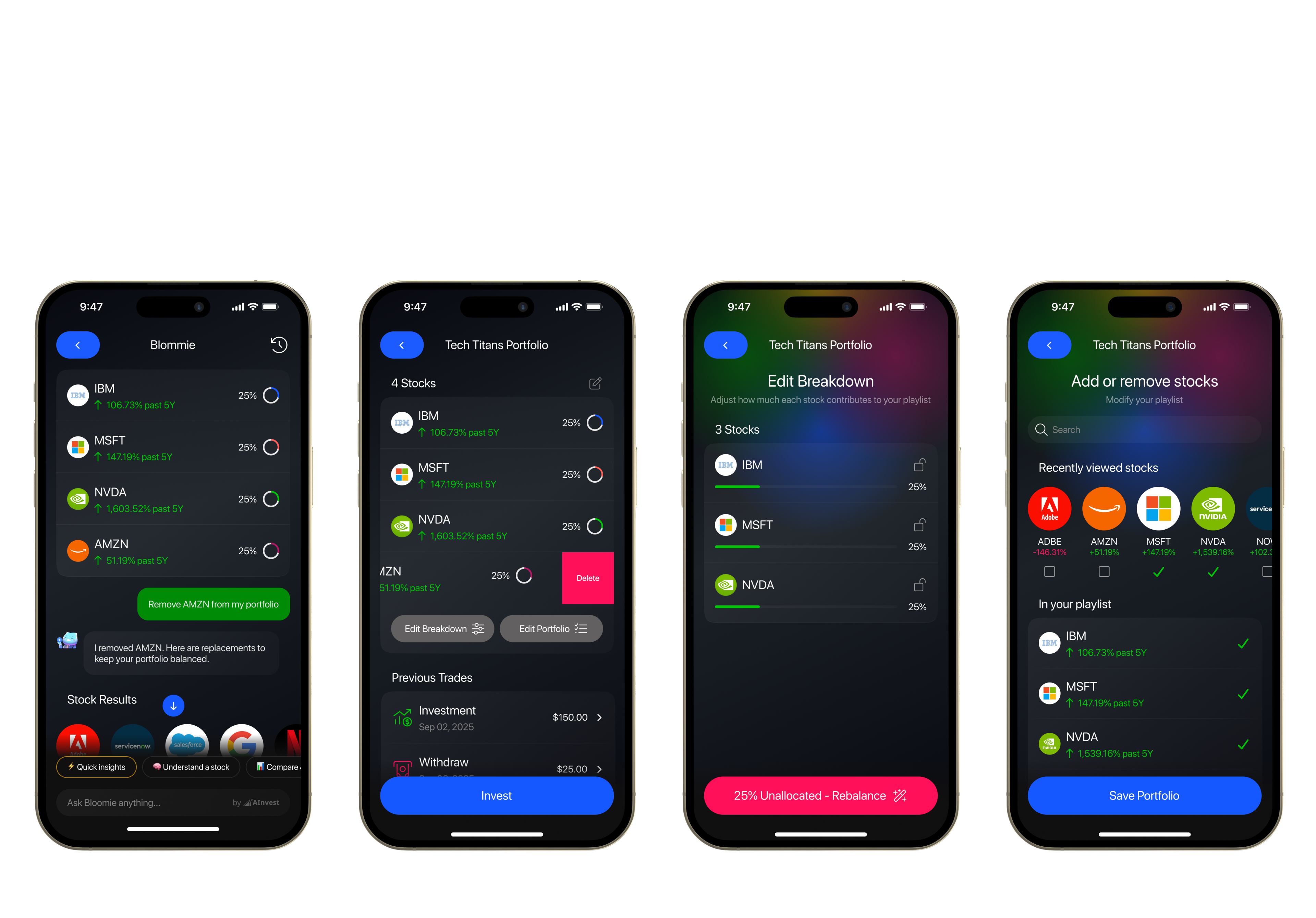 A user researching a single stock, comparing performance between companies, building a portfolio, or trying to make sense of recent market news was asking fundamentally different questions. But Bloomie responded with the same structure, tone, and depth each time.